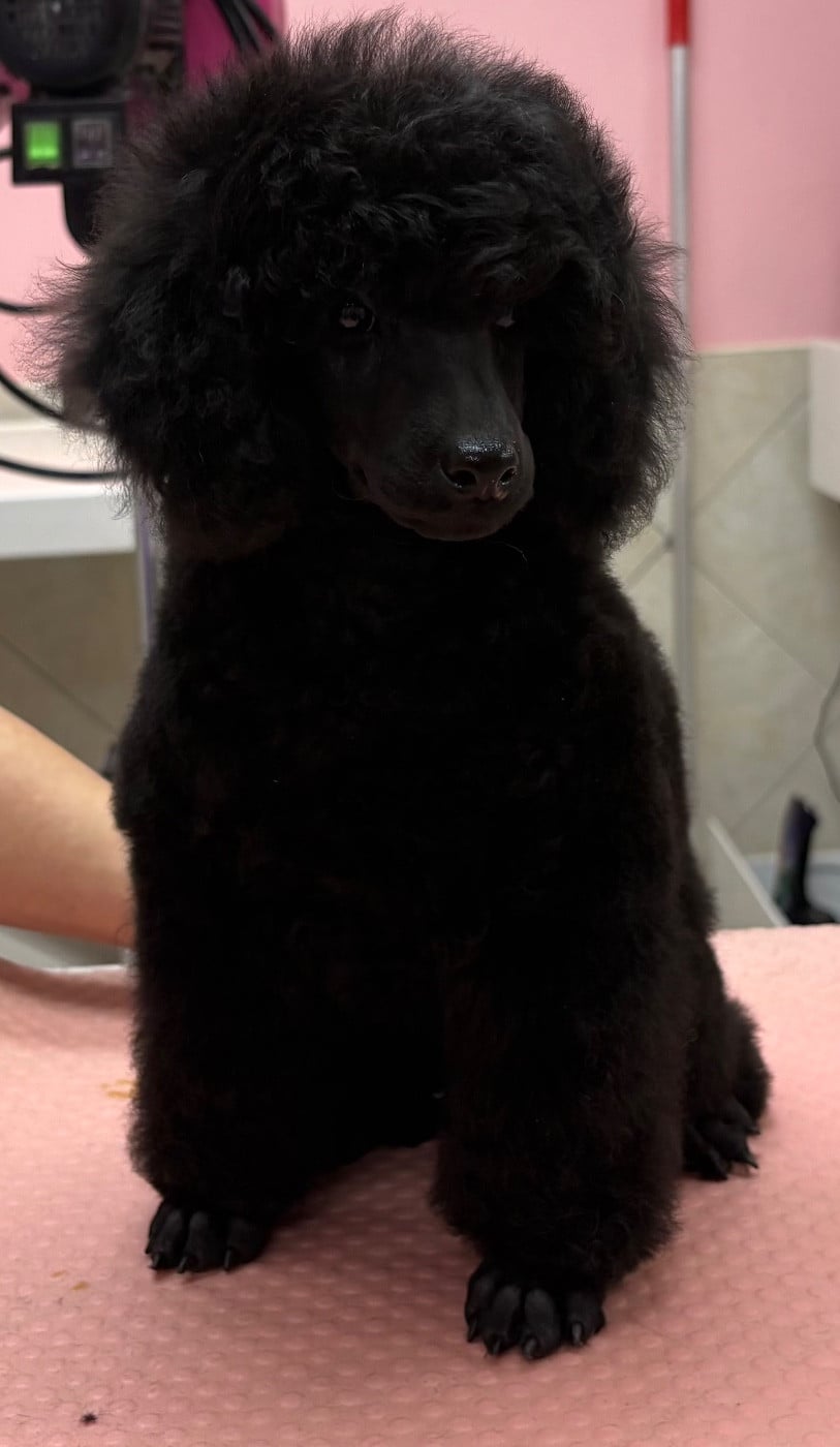Aston est un petit caniche très câlin et joueur.